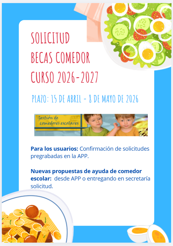 AYUDAS DE COMEDOR PARA EL CURSO 2026-2027